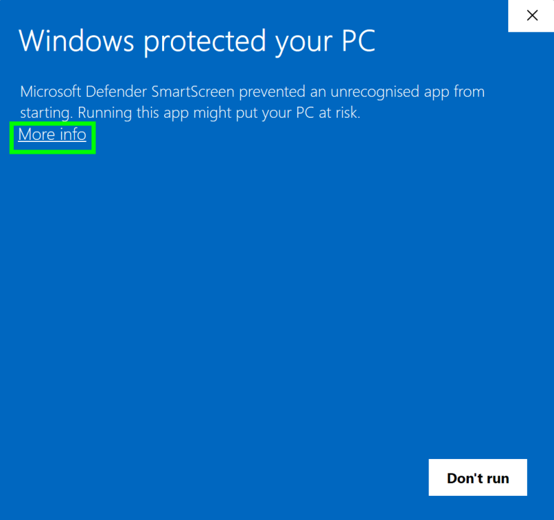 Windows may show a “Windows protected your PC” or similar SmartScreen warning.